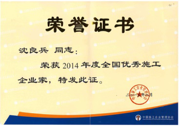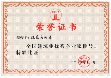 沈良兵主席荣获全国建...