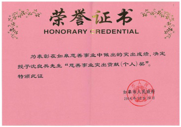 沈良兵主席荣获如皋市...