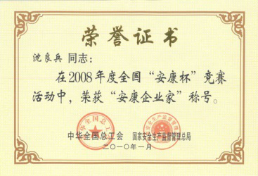 沈良兵主席荣获安康杯...